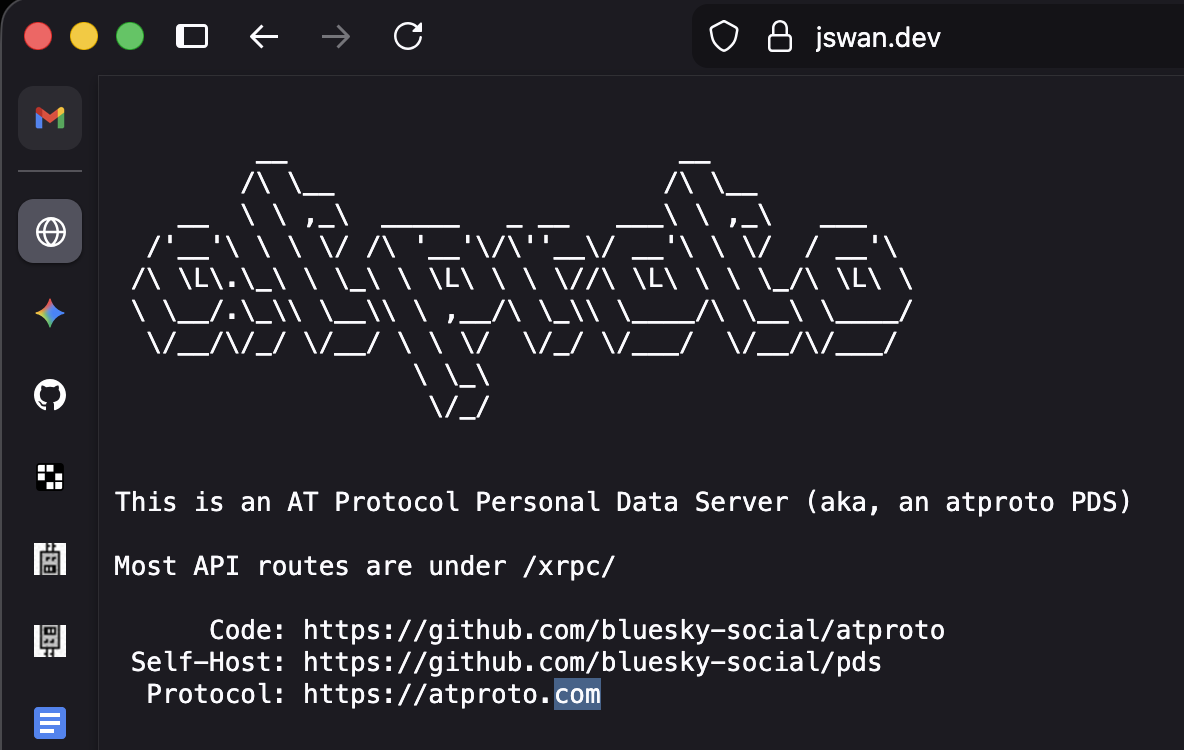 But that’s fine. The point wasn’t necessarily to become an active Bluesky user. The point was learning how federated protocols work, understanding how to set up and maintain a service, and having the infrastructure if I want it. If friends want accounts, I can give them invites. The data lives on my server, even if that data is currently just me posting a sweet link to a swantron blog post once every three months.