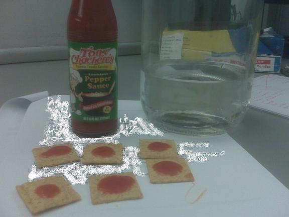Step 1) Tony Chachere’s the shit out of some Wheat Thins Step 2) Costco pickle jar the shit out of some water