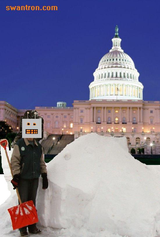 Upon hearing preliminary reports that DC is about to get precisely 1 assload of snow, swantron.com has managed to deploy a field agent robot reporter to the scene. How are things looking, REPORTRON?