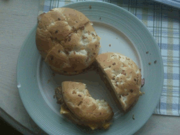 How about that slick guy^ ? And those slick burgers ^ ? Here is The Perfect Buffalo Burger recipe: Step 1) Place 1/2 lb ground buffalo in bowl Step 2) Add a few shakes of Worcestershire sauce (feel free to substitute Gloucestershire, Dorchester, or any other German-sounding sauce) Step 3) Toss in some bread crumbs…this will soak up what little fat there is, and keep the burgers from drying out Step 4) Fire up the George Foreman Grill…knock that sucker out Step 5) Cook until desired “done-ness” is achieved…I like my buffalo mooing, so two minutes per side is about perfect. Step 6) Assemble, and enjoy. Note: DO NOT OVERCOOK BUFFALO… order/eat it a full level of done-ness below how you would beef. Trust me on this one. Note 2: UBUNTU RULES… try tossing an animated gif together using the trial version of Corel Paint that comes with your stupid Windows machine. The Gimp is free as always with Karmic Koala. Linux rules. Trust me on this one, too.
